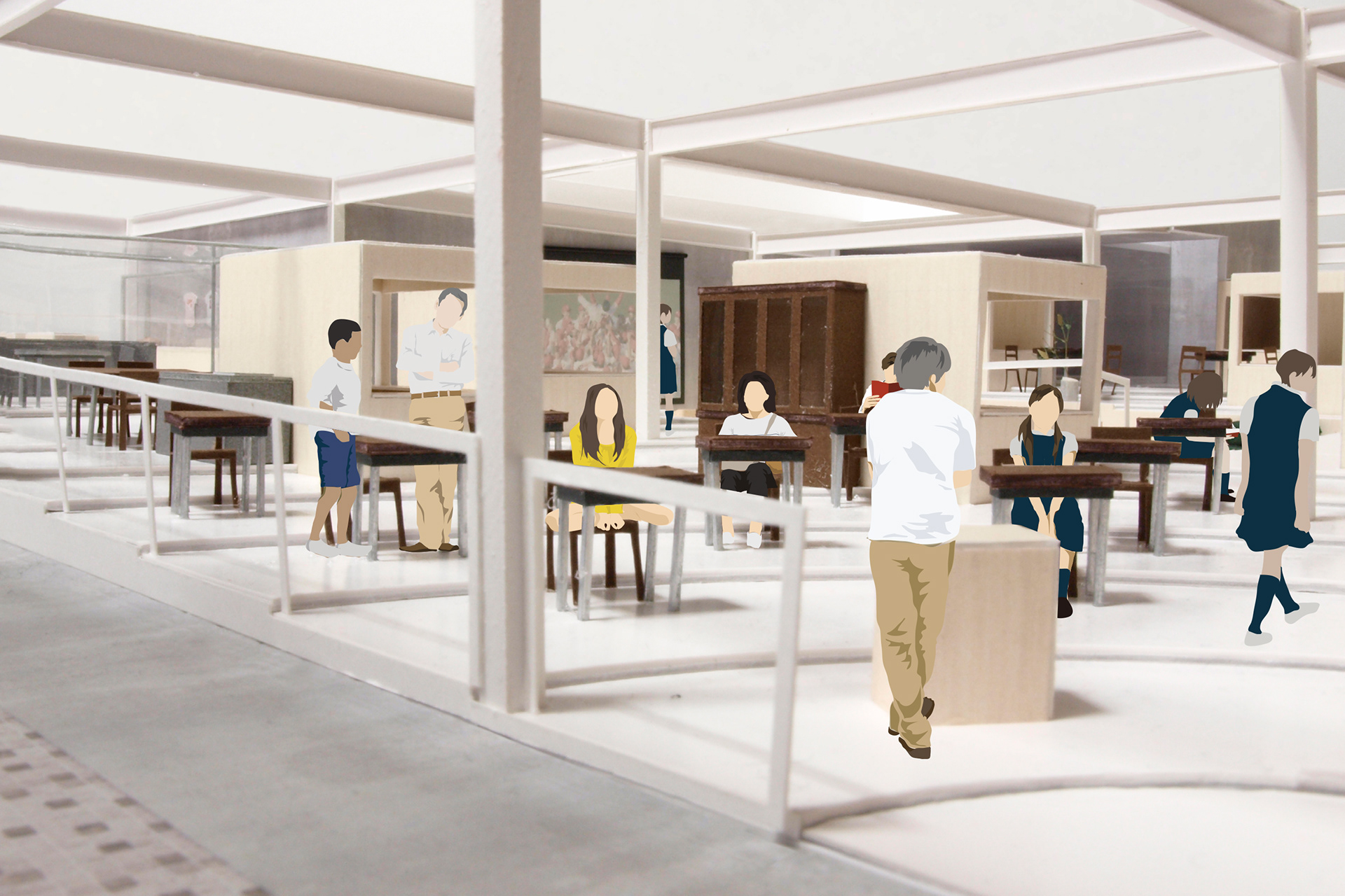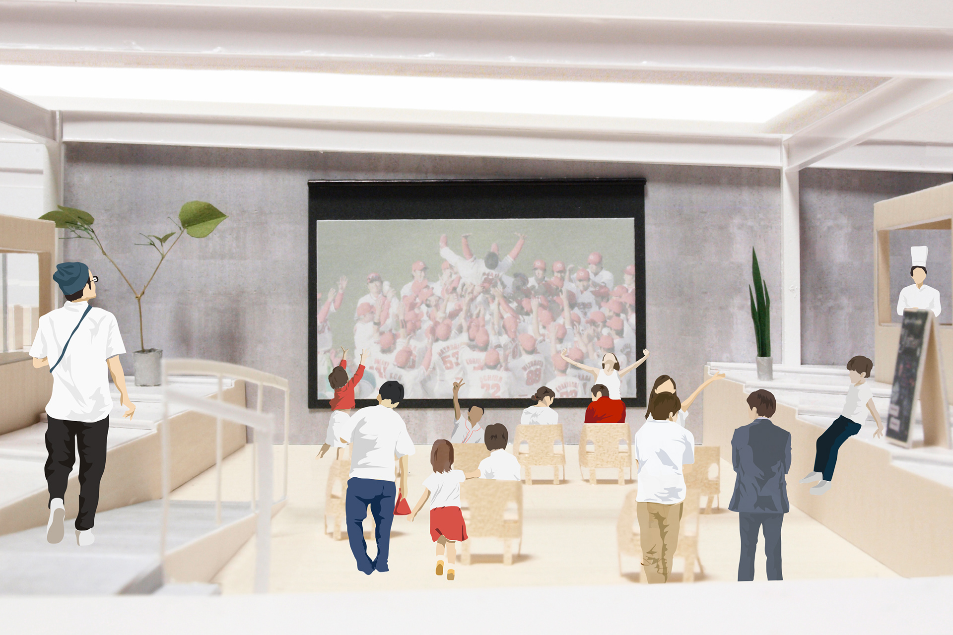 人々が集まる場所と言うよりは、ここから人々が広がる場所。そんな意味を、パラボラ状の居場所に込めたいと考えました。