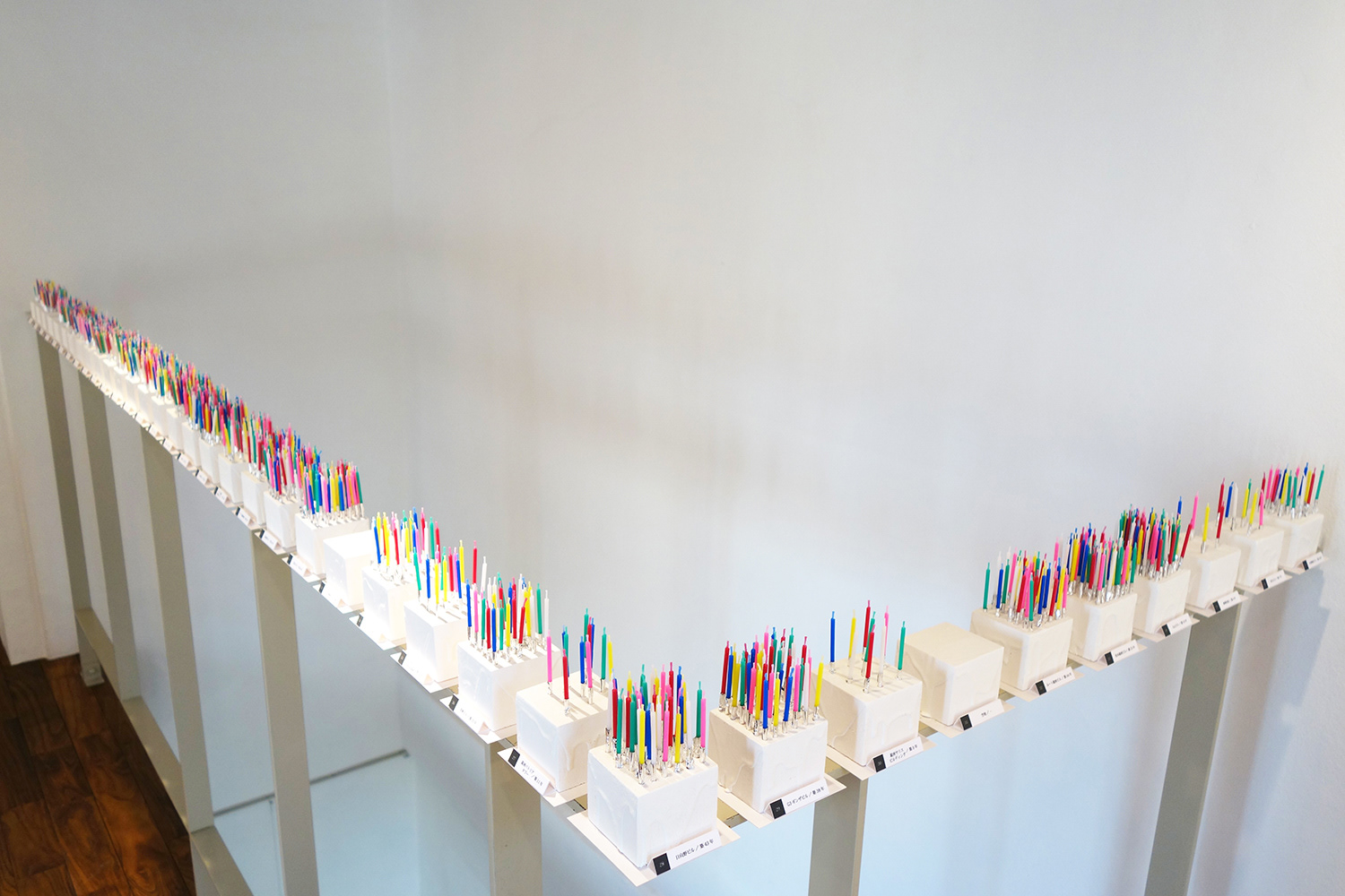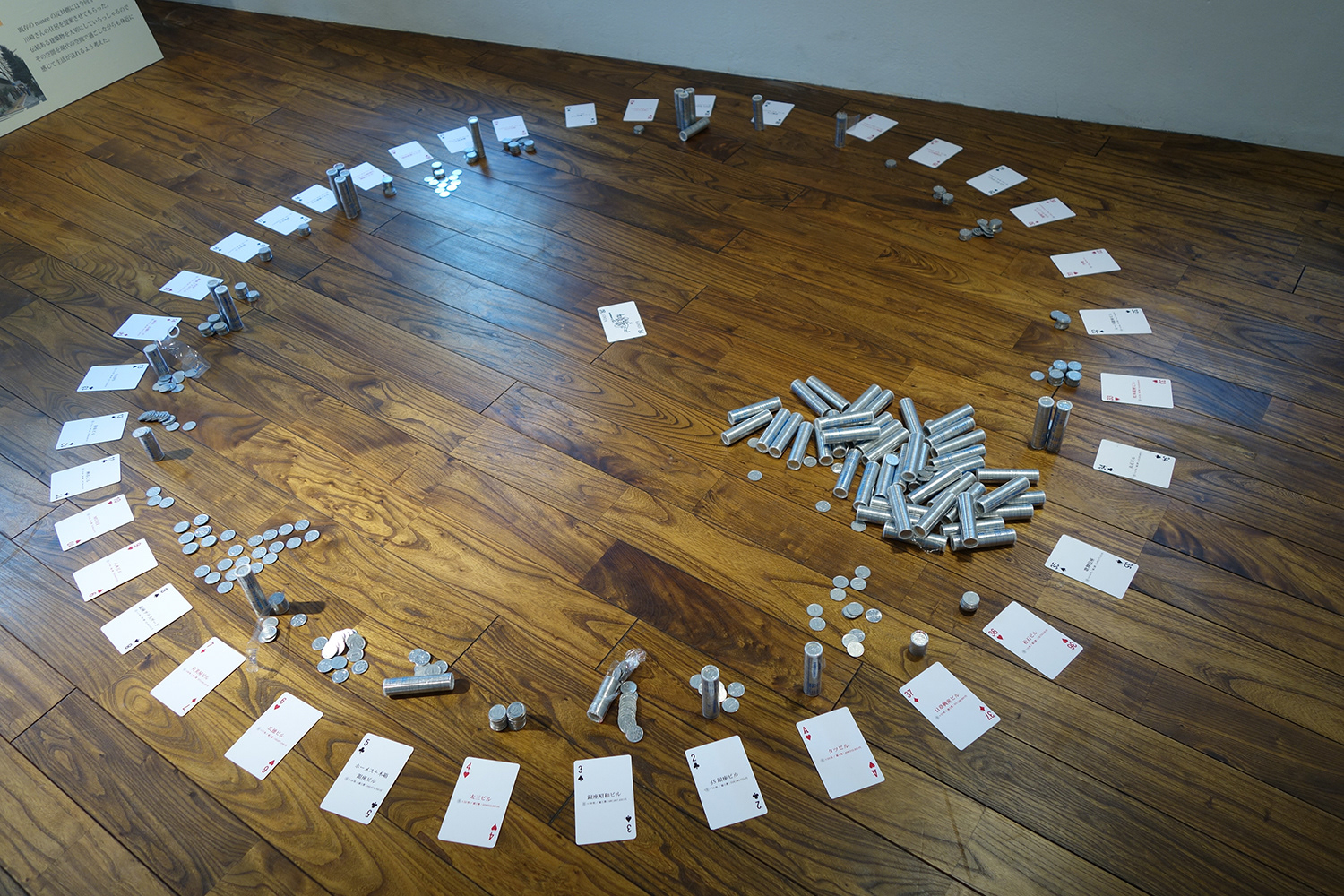 昭和通りにまつわる「大きさ・お金・時間」という3つのテーマを、「チョコレート・コインとトランプ・ケーキとロウソク」を用いて表現したインスタレーションです。