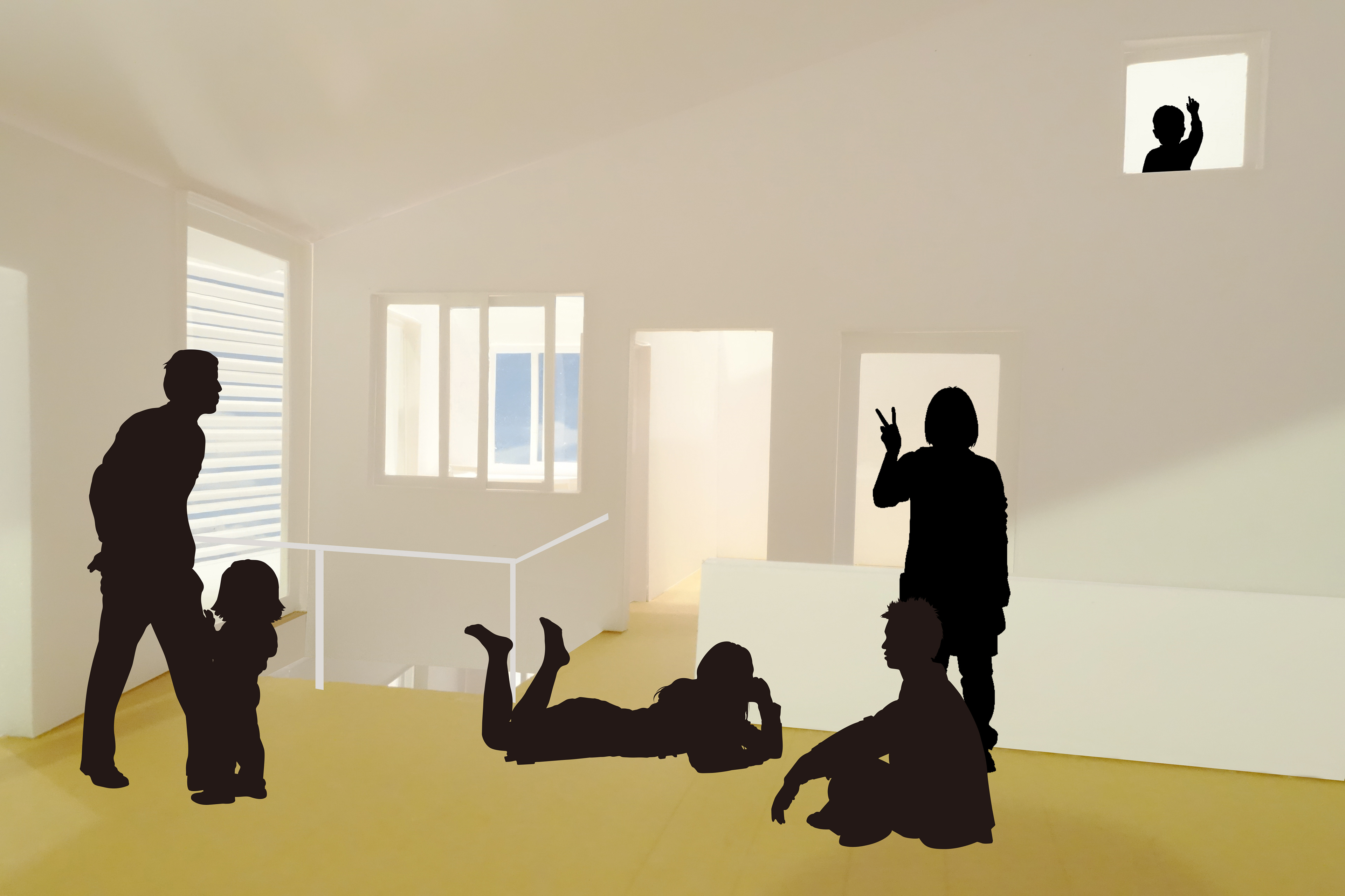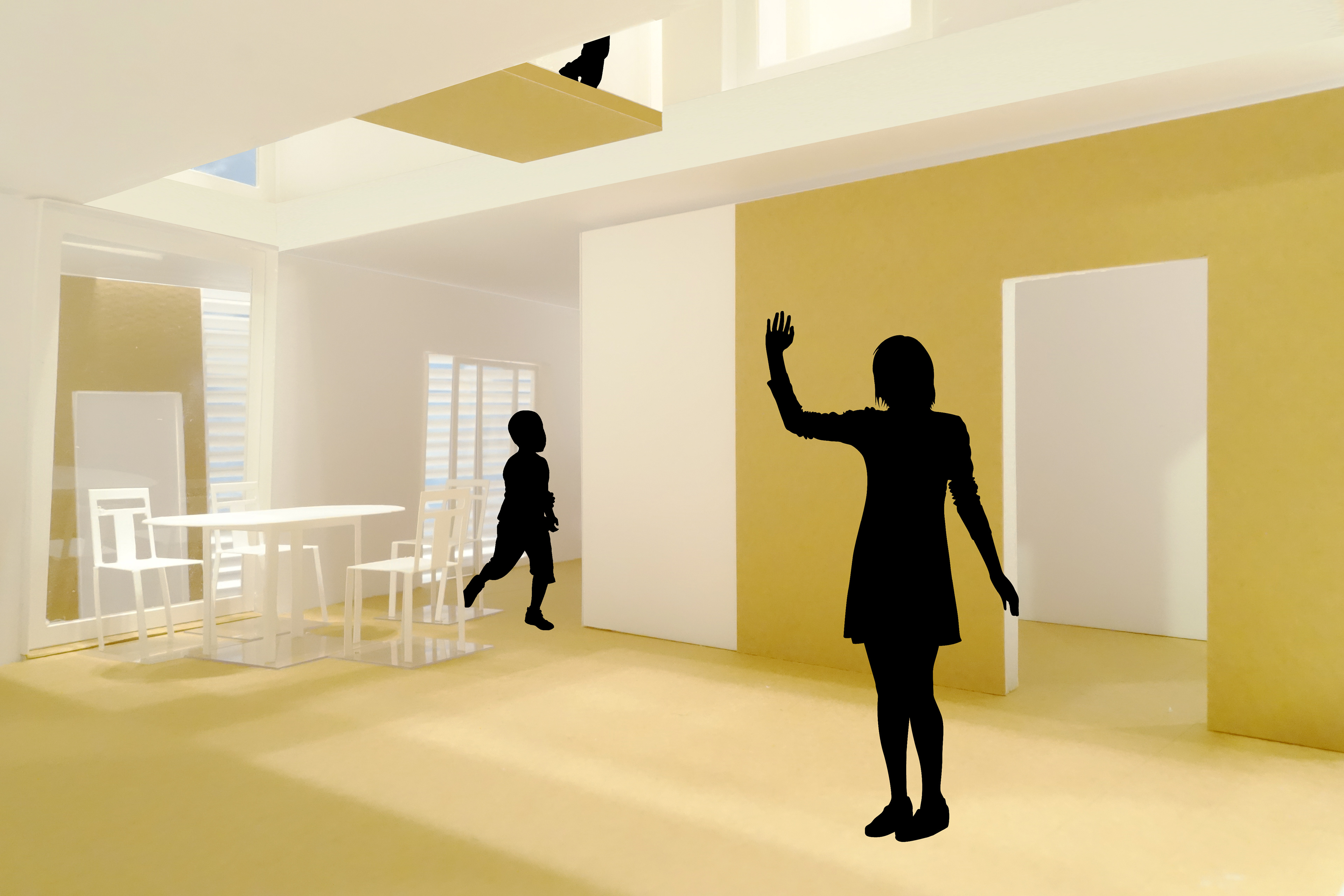 【めぐる家】は、シンプルな5つのヴォリュームにより構成されています。5つのヴォリュームの中にはそれぞれに機能が計画されており、視認性を持って一つながりで結ばれています。風土と家族の営みを散策路として楽しめる建築を提案します。