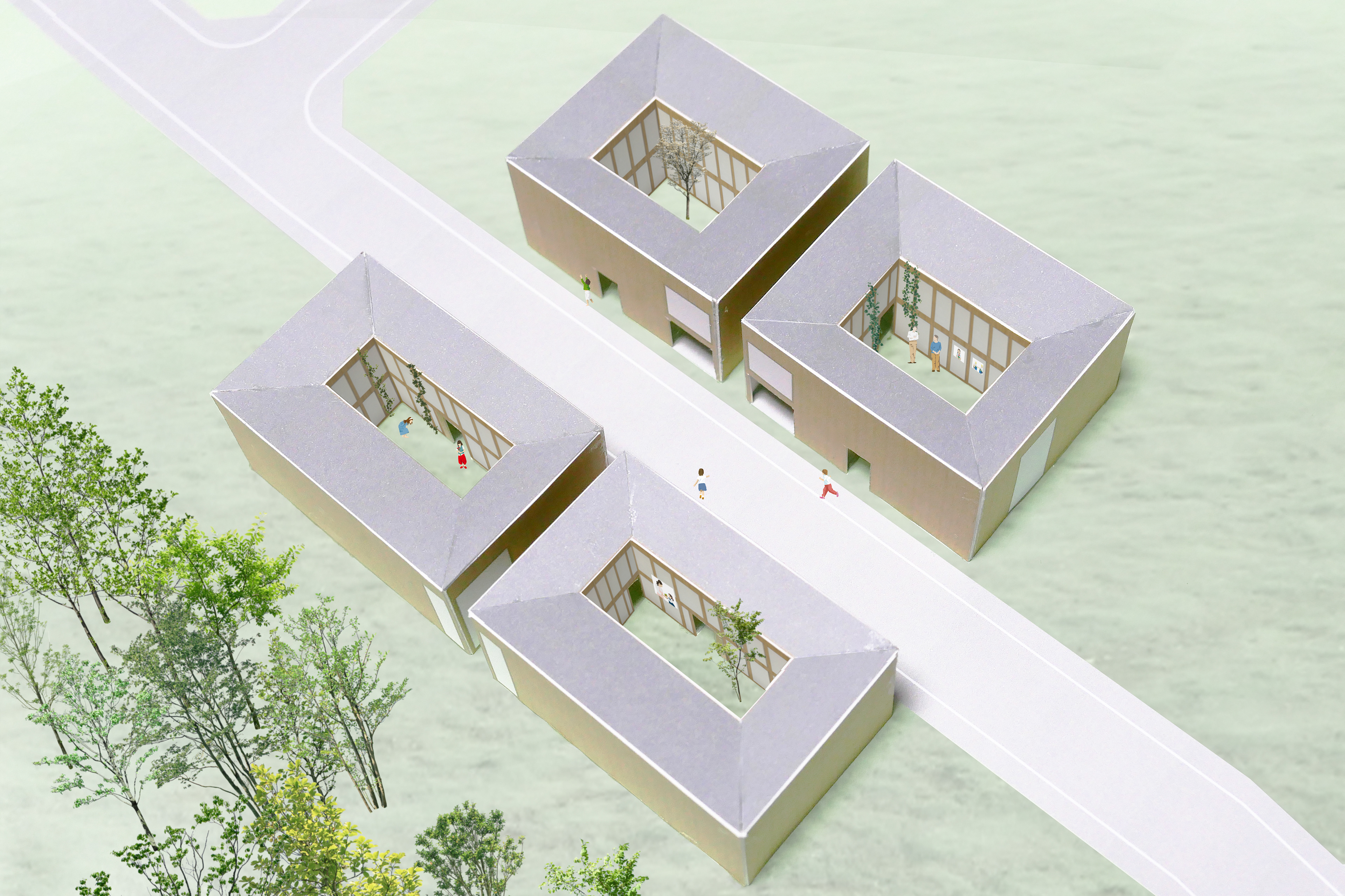 提案する全住戸の中央には、『子ども道』といわれる大きな空き地が用意されています。