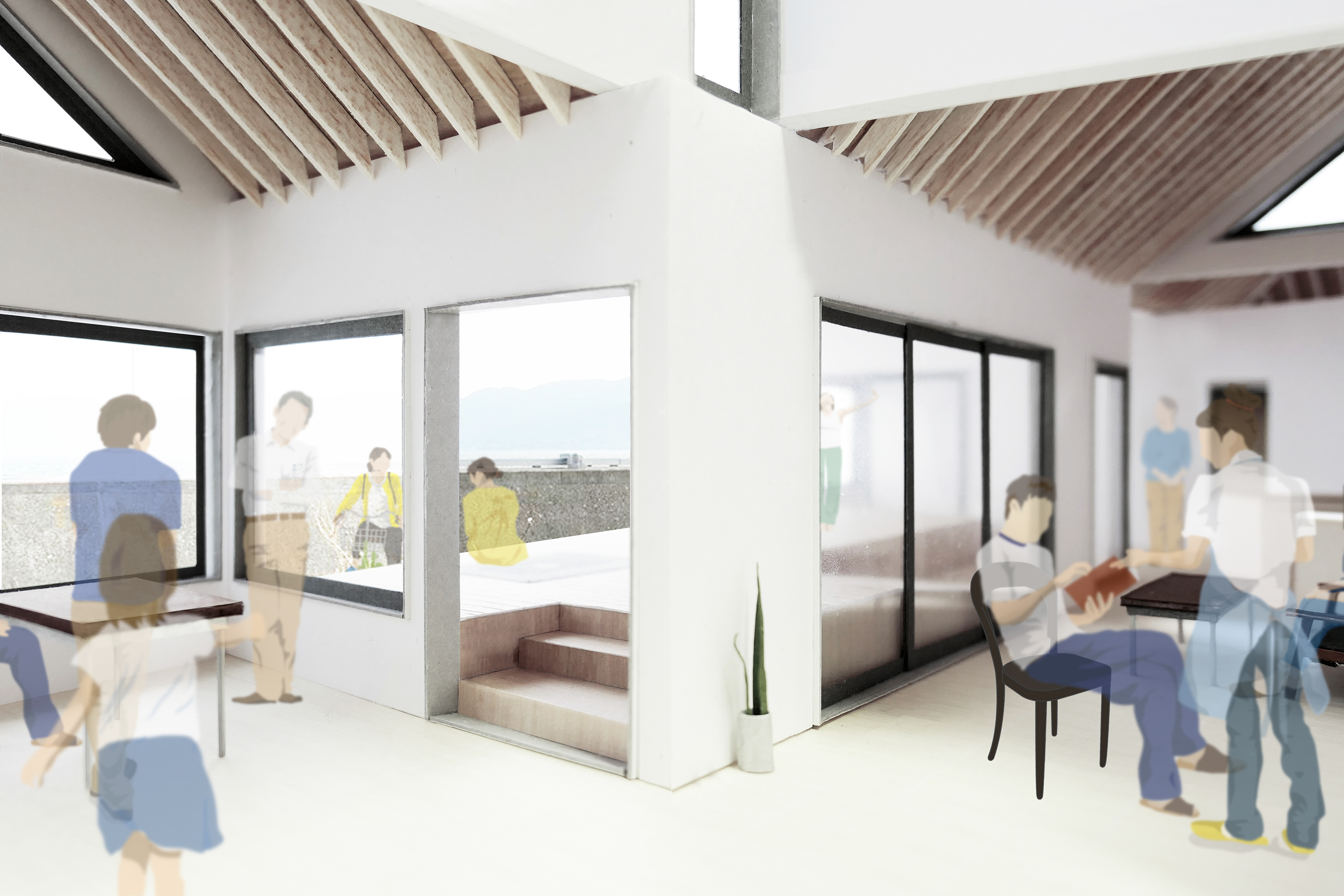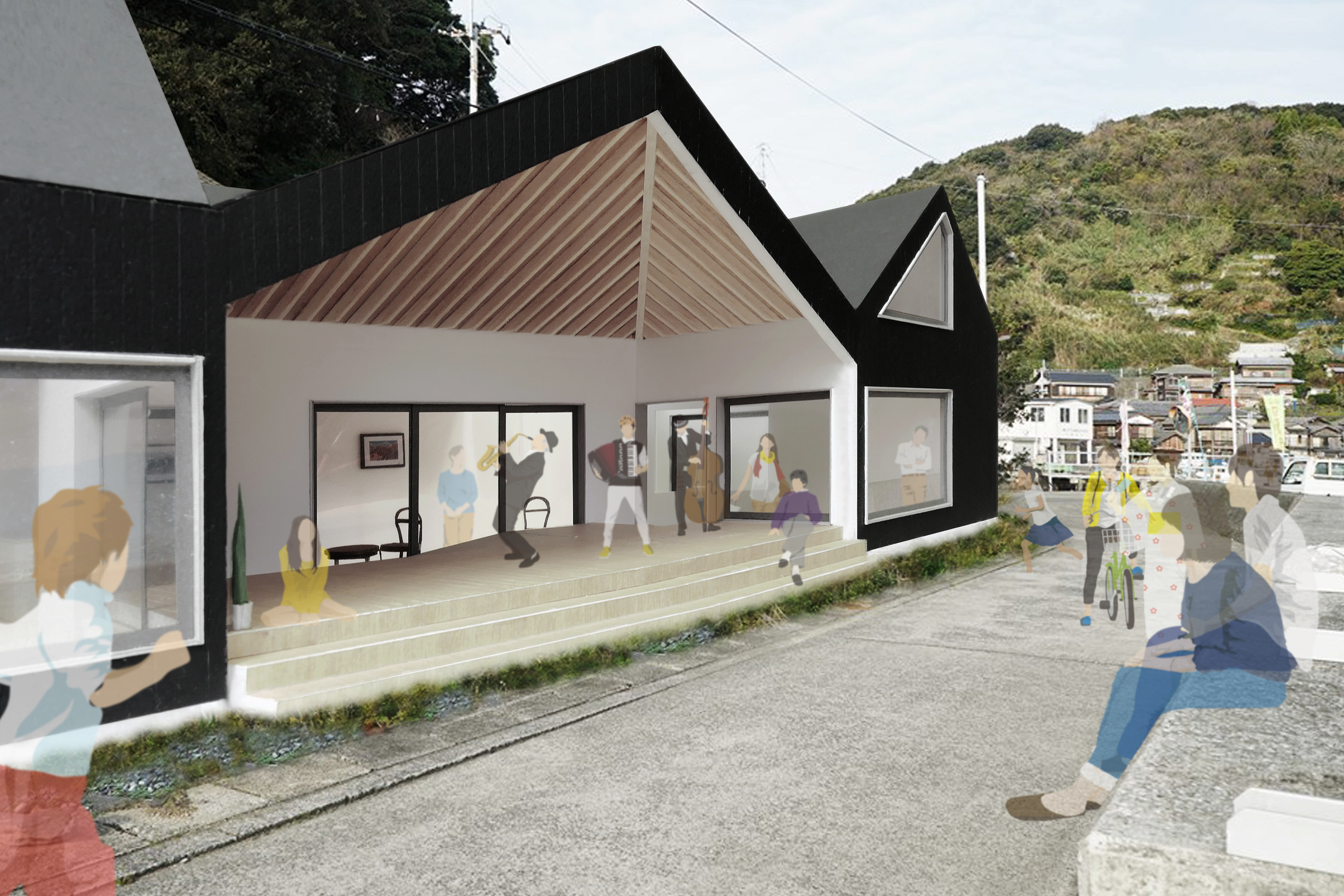 083_cp_O島交流拠点施設コンペ _【来訪者と島民の長屋】 意匠 : 菊池甫 企画協力 : 山本展久(山本展久アトリエ荒川企画室)