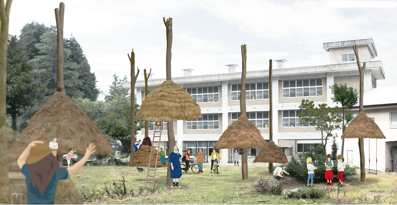091_cp_白倉の廃校利活用コンペ _【通学路に開く傘のような寝床】 意匠 : 菊池甫 企画協力 : 山本展久(山本展久アトリエ荒川企画室)