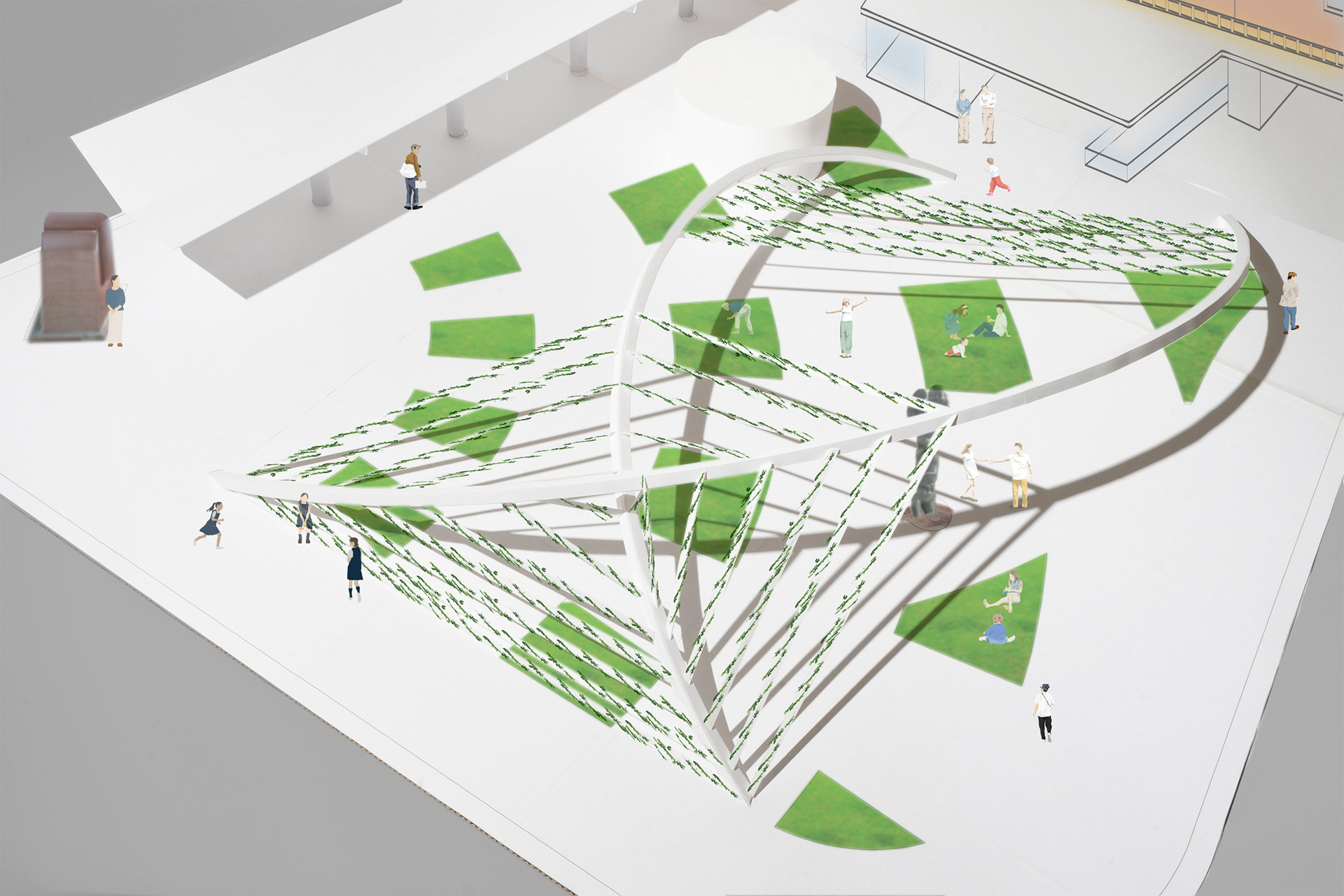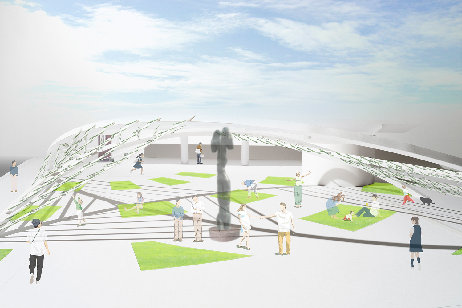 神戸市三宮駅前、通称「パイ山」と呼ばれ親しまれていた広場の再整備コンペ案。